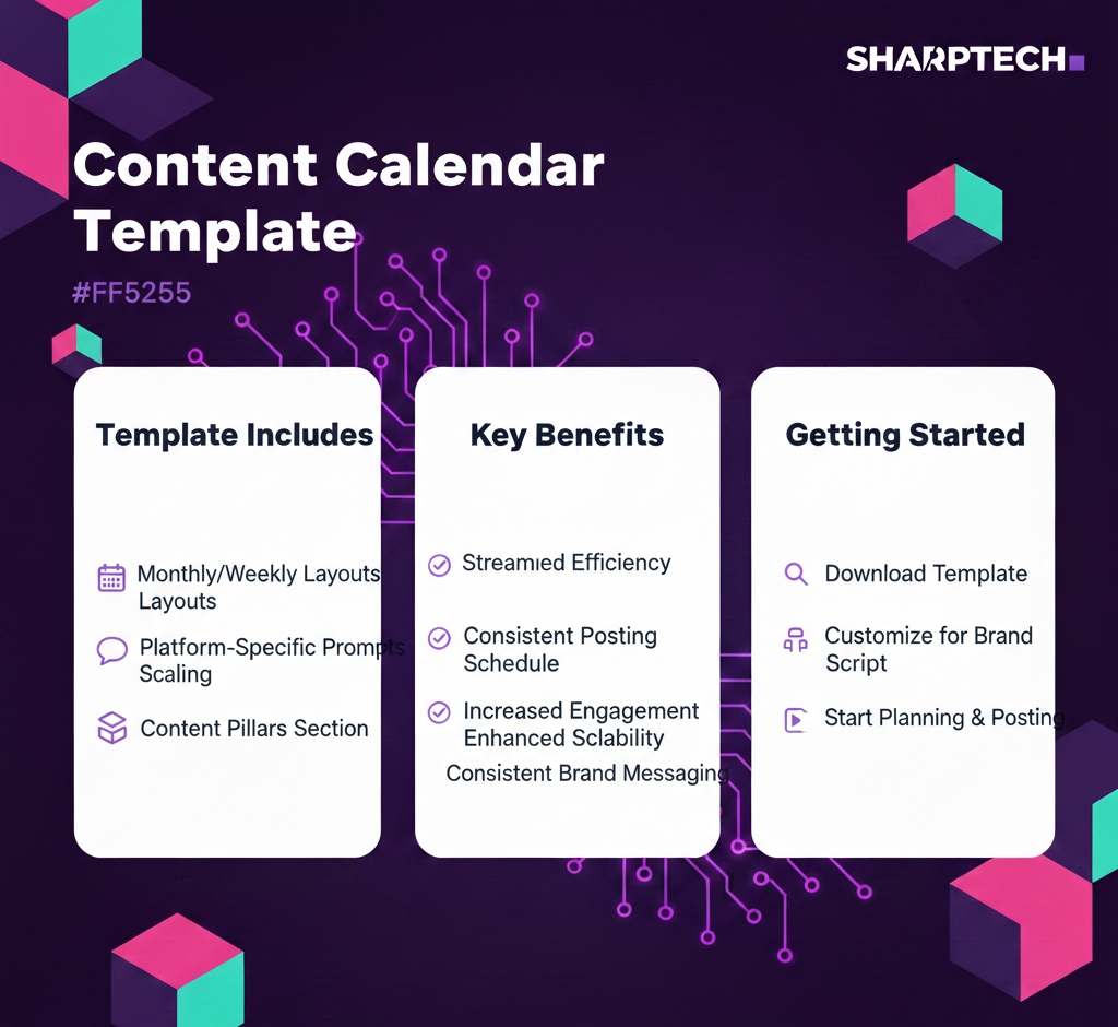 Pre-built 90-day content calendar template with post ideas, content pillars, and scheduling framework for small businesses. Includes Google Sheets template and content strategy guide.