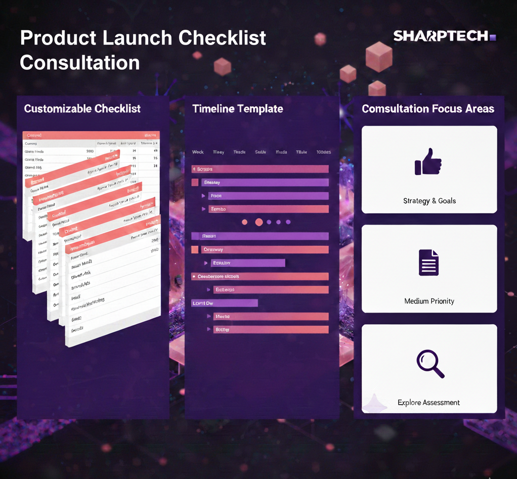 Customized product launch planning session with detailed checklist covering pre-launch, launch day, and post-launch activities. Includes timeline template and stakeholder communication plan.